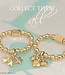 Hand-threaded on high-quality jewellery elastic, this beaded ring with a stretch fit, will sit comfortably around your finger. The inner size is approximately Ø 18mm. and can be worn around any finger. The 3 small heart charms give this ring its flirtatious look. All gold rings are embellished with our distinctive logo-bar.